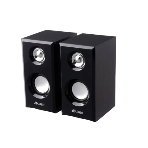 اسپیکر دو تیکه کایزر مدل Kaiser KS-61 طول کابل های متصل در حدود 100 سانتی متر، تامین انرژی از طریق کانکتور USB با ولتاژ 5 ولت DC میزان حساسیت سگنال به نویز برابر با 60 دسی بل و پاسخ فرکانسی برابر با 90 هرتز الی 20 کیلوهرتز بدنه ساخته شده از جنس چوب و پلاستیک مقاوم در برابر آسیب های احتمالی دارای دو عدد اسپیکر 52 میلی متری با توان خروجی کلی 6 وات (2*3W) نوع اتصال با سیم توسط رابط جک 3.5 میلی متری صدا متصل به بدنه روکش کابل از جنس پلاستیک باکیفیت، مقاوم در برابر کشش و پارگی قابلیت تنظیم ولوم با کلید چرخشی به روی پنل متصل به سیم.