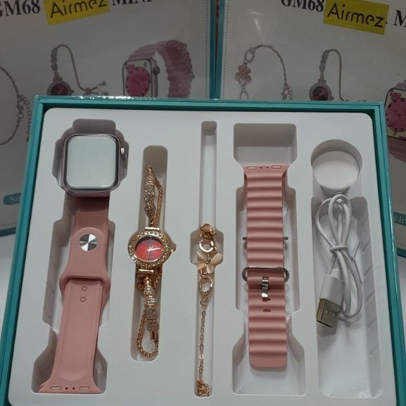 ساعت هوشمند GM68 Mini به همراه یک ساعت هوشمند، ساعت عقربه ای زنانه، دستبند، دو عدد بند سیلیکونی و شارژر ارائه میشود که با توجه به اقلام همراه و امکاناتی نظیر: صفحه نمایش رنگی و لمسی، صفحه نمایش روان و بدون لگ، سنسورهای سلامتی فشار خون، اکسیژن خون و ضربان قلب، واچ فیس های متنوع، قیمت مناسبی دارد. که گزینه بسیار مناسبی برای کسانی است که با قیمت مناسب محصول کاملی می خواهند.