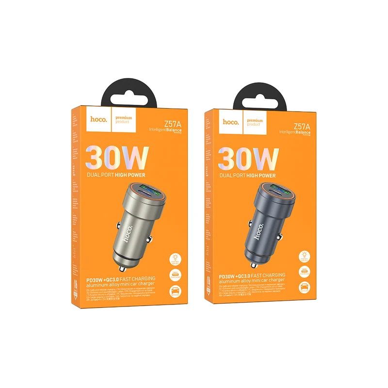 شارژر فندکی هوکو مدل Hoco Z57A با حداکثر توان خروجی 30 وات (PD + QC3.0)، همراهی ایده‌آل برای شارژ فوق‌سریع در خودرو است. طراحی زیبا و جمع‌وجور، بدنه آلومینیوم مقاوم، و دو پورت قدرتمند باعث می‌شود همزمان موبایل، تبلت یا هر دستگاه دیگری را با نهایت سرعت شارژ کنید.