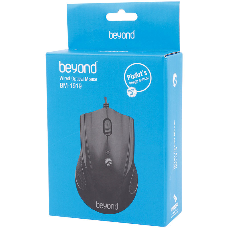 موس سیمی بیاند مدل Beyond BM-1919 مجهز به ۳ کلید چپ/راست و اسکرول، دارای سنسور PixArts. متریال ساخت بدنه پلاستیک با کیفیت مقاوم در برابر ضربه و فشار.