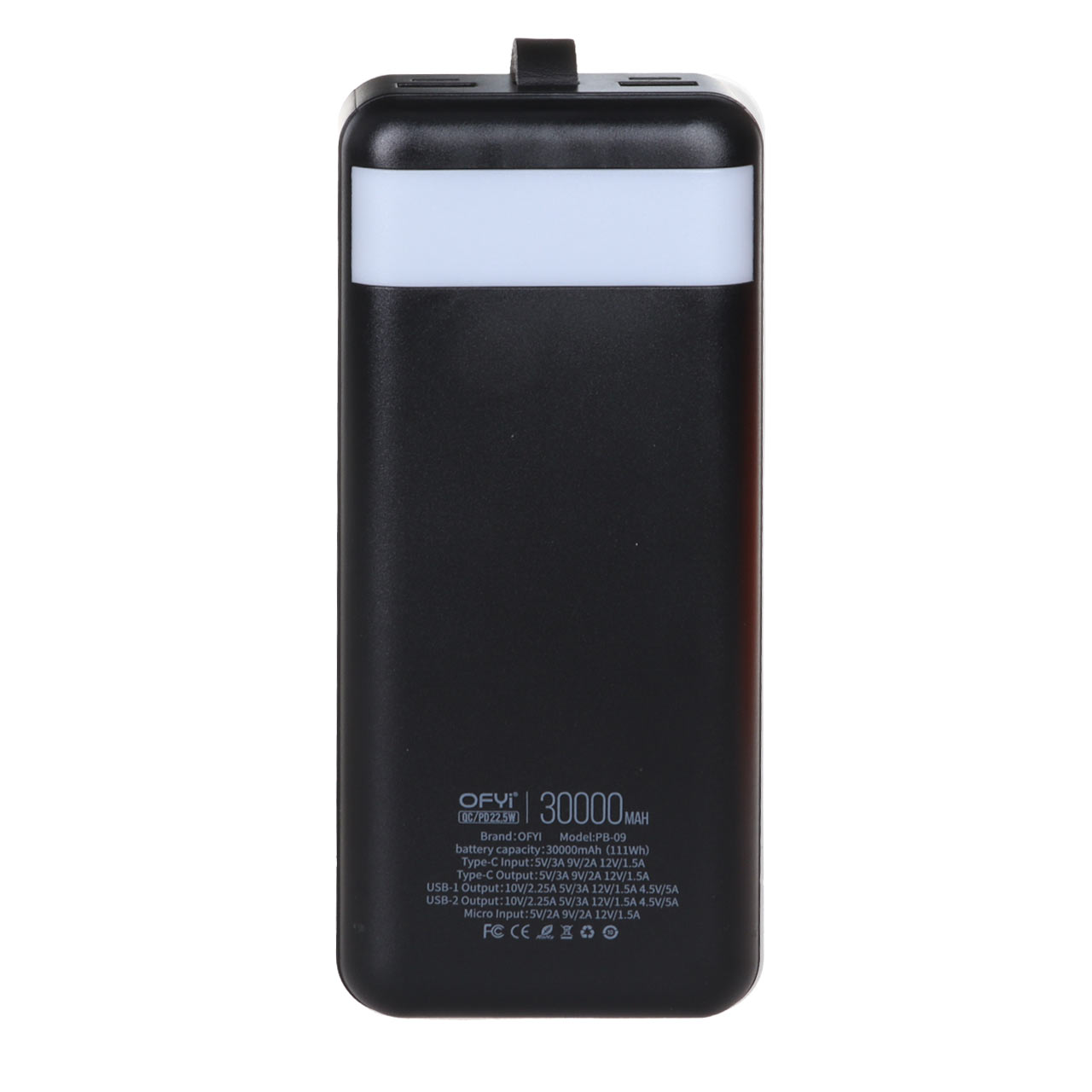پاوربانک اوفی مدل Ofyi PB-09 30000 دارای ظرفیت 3000 میلی آمپر ساعت به همراه پشتیبانی از فناوریهای شارژ سریع QC3.0 و Power Delivery در کنار توان 22.5 وات با سرعت مطلوبی تلفن همراه شما را شارژ میکند. از طرفی برخورداری از تکنولوژی شارژ ایمن (MultiProtect) از دستگاه شما در برابر نوسانات و لتاژ و اتصالات کوتاه محافظت میکند. این محصول دارای دو پورت ورودی یک عدد میکرو USB و دیگری تایپ سی میباشد که میتوانید آن را به وسیله این پورت ها شارژ کنید.
