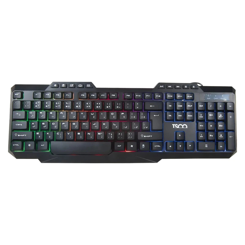 کیبورد سیمی تسکو مدل TSCO TK 8019 یک صفحه‌کلید فول‌سایز مخصوص بازی است که با استفاده از سوییچ‌های سیزر از نوع ممبران، عملکردی نرم و پاسخگو ارائه می‌دهد. این کیبورد با ابعاد ۴۵۰ در ۲۶ در ۱۷۰ میلی‌متر و وزن ۴۶۵ گرم، دارای بدنه‌ای از پلاستیک با دوام است. طراحی آن به گونه‌ای است که پایه‌های قابل تنظیم و ضد لغزش، ثبات و راحتی استفاده در جلسات طولانی بازی یا تایپ را تضمین می‌کند. حروف فارسی روی کلیدها حک شده است تا تجربه تایپ برای کاربران فارسی‌زبان بهبود یابد. این کیبورد از طریق کابل USB با روکش پلاستیکی به طول ۱۸۰ سانتی‌متری و اتصال Plug & Play به سیستم وصل می‌شود و با تمامی سیستم‌عامل‌های ویندوز، مک، لینوکس و اندروید سازگار است. همچنین دارای نورپردازی پس‌زمینه LED RGB است که کل سطح کیبورد را پوشش می‌دهد و جلوه‌ای مدرن به آن می‌بخشد. تعداد کلیدهای این کیبورد ۱۱۴ عدد بوده و عمر ضربه‌پذیری آن تا ۱۰ میلیون کلیک اعلام شده است. علاوه بر این، مجموعا ۱۲+۱۰ کلید میانبر برای دسترسی سریع به عملکردهای گیمینگ تعبیه شده‌اند.