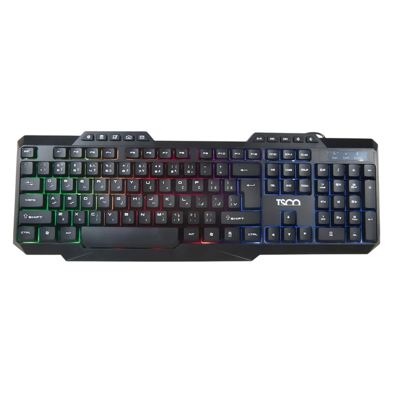 کیبورد سیمی تسکو مدل TSCO TK 8019 یک صفحهکلید فولسایز مخصوص بازی است که با استفاده از سوییچهای سیزر از نوع ممبران، عملکردی نرم و پاسخگو ارائه میدهد. این کیبورد با ابعاد ۴۵۰ در ۲۶ در ۱۷۰ میلیمتر و وزن ۴۶۵ گرم، دارای بدنهای از پلاستیک با دوام است. طراحی آن به گونهای است که پایههای قابل تنظیم و ضد لغزش، ثبات و راحتی استفاده در جلسات طولانی بازی یا تایپ را تضمین میکند. حروف فارسی روی کلیدها حک شده است تا تجربه تایپ برای کاربران فارسیزبان بهبود یابد. این کیبورد از طریق کابل USB با روکش پلاستیکی به طول ۱۸۰ سانتیمتری و اتصال Plug & Play به سیستم وصل میشود و با تمامی سیستمعاملهای ویندوز، مک، لینوکس و اندروید سازگار است. همچنین دارای نورپردازی پسزمینه LED RGB است که کل سطح کیبورد را پوشش میدهد و جلوهای مدرن به آن میبخشد. تعداد کلیدهای این کیبورد ۱۱۴ عدد بوده و عمر ضربهپذیری آن تا ۱۰ میلیون کلیک اعلام شده است. علاوه بر این، مجموعا ۱۲+۱۰ کلید میانبر برای دسترسی سریع به عملکردهای گیمینگ تعبیه شدهاند.